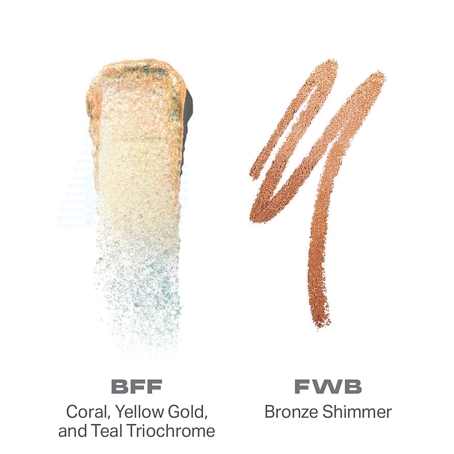 Vilka budskap sänder du ut? Visa alla sidor av hur du känner dig med detta innovativa ögonstift med två ändar, en med krämig och en med flytande skugga. Applicera den krämiga högpigmenterade skuggan med svepande rörelser för omedelbar effekt och lägg sedan på de flytande kromskuggorna för en mångfacetterad dimension.