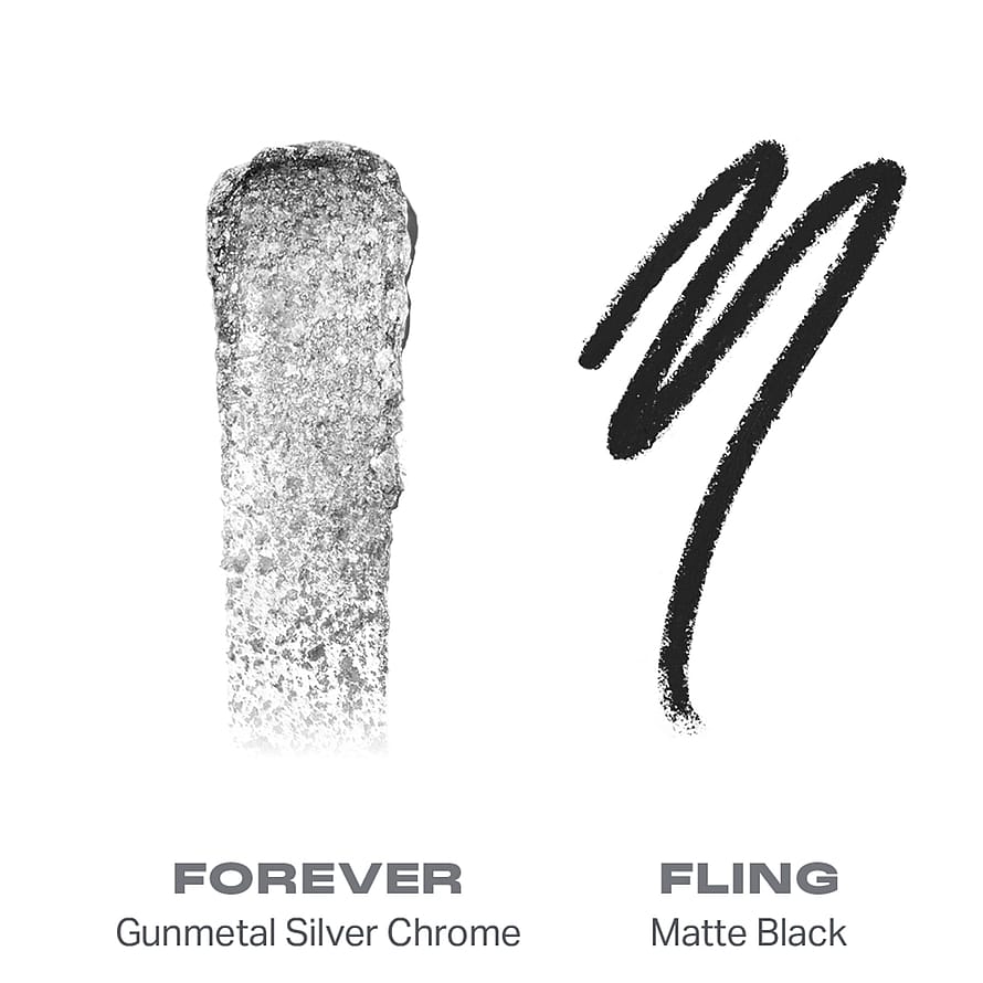 Vilka budskap sänder du ut? Visa alla sidor av hur du känner dig med detta innovativa ögonstift med två ändar, en med krämig och en med flytande skugga. Applicera den krämiga högpigmenterade skuggan med svepande rörelser för omedelbar effekt och lägg sedan på de flytande kromskuggorna för en mångfacetterad dimension.