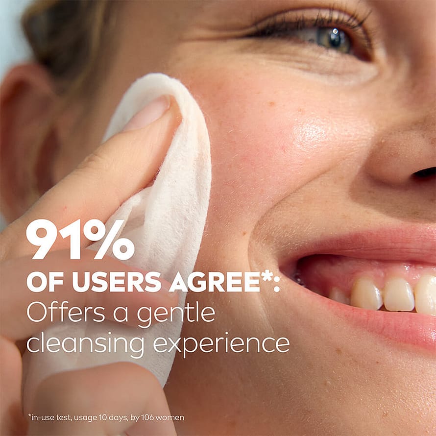 Rengör varsamt ansikte, hals och ögonområdet med mjuka rörelser. Håll ögonen stängda. Återförslut varsamt förpackningen efter användning med den självhäftande etiketten för att förhindra att servetterna torkar ut. Återvinn ytterförpackningen som plast. Undvik direkt kontakt med ögonen. Spola inte ner i toaletten.