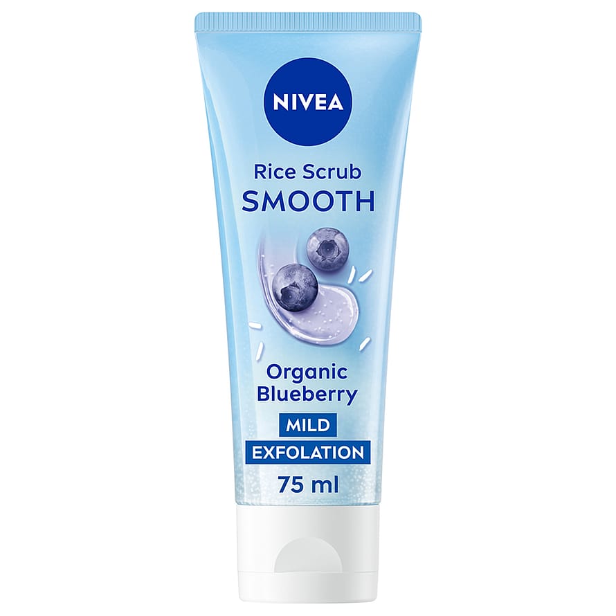 NIVEA Rice Scrub Smooth är en ansiktsskrubb som är berikad med med dyrbara Japonica-risfrön och blåbär, vilka båda är ekologiska. Med exfolieringskorn av 100% naturligt ursprung exfolierar skrubben milt och tar effektivt bort döda hudceller utan att irritera huden. Denna NIVEA ansiktsskrubb stödjer hudens naturliga förnyelseprocess. Den förfinar hudytan och lämnar den slät, vilket gör att din hud känns fräsch och ren. Dessutom stärker den upp huden och gör att huden bibehåller sin naturliga fuktbalans.