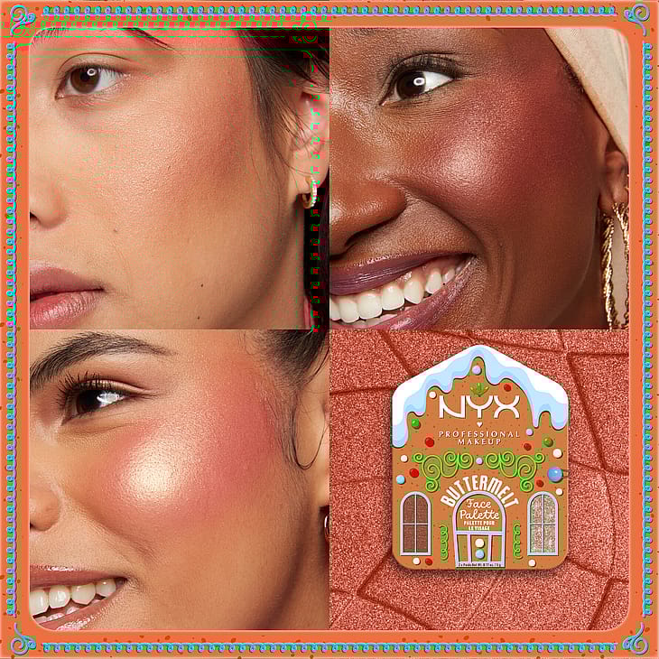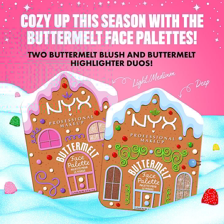 NYX Professional Makeup Buttermelt Face Palette är en makeup-duo för ansiktet med bronzer och highlighter. Detta är lösningen för dig som vill ha en varm och strålande vinter-glow med sin krämiga formulan som sömlöst tonas ut i huden och ger en skir, rosa färg med lyster som håller i upp till 12 timmar. Perfekt för festliga dagar och nätter!