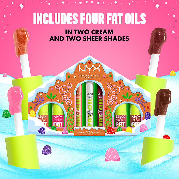 Förgyll väntan inför jul med NYX Professional Makeup Holiday Fat Gingerbread House Kit! Ett exklusivt limited edition-set som innehåller våra älskade Fat Oil Lip Drip läppglans och Fat Oil Slick Click läppbalsam. Detta är det perfekta kitet för att omfamna säsongens mysiga stunder och sprida julglädje!