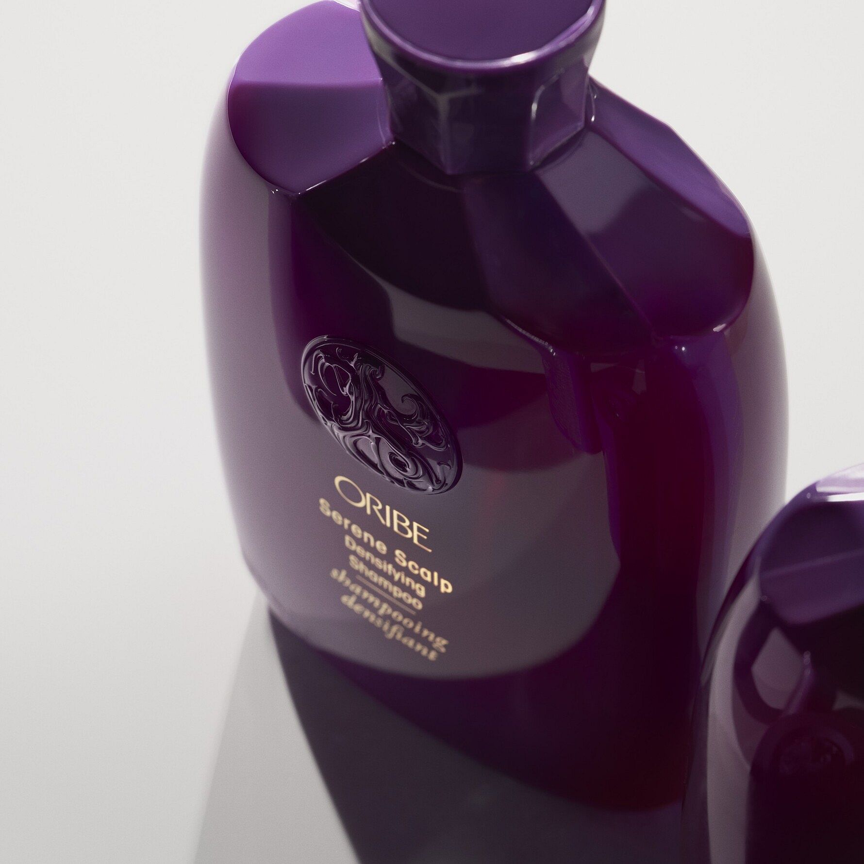 Oribes schampo för tunnt hår har utvecklats i samarbete med en certifierad trikolog och har bevisat sig ge fylligare, tätare och friskare hårstrån under tre månders tid. Formulerad med en bioaktiv blandning av ärtgroddsextrakt, rödklöverextrakt och en biomimetisk peptid, stimulerar denna milda rengöring hårbotten, minskar håravfall och bevarar hårets integritet.