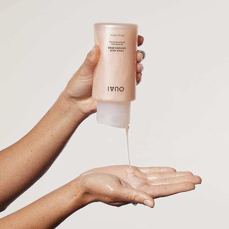 Löddra in en lagom mängd THICK-schampo i händerna och arbeta in det i rötterna och överallt där håret nuddar hårbotten.