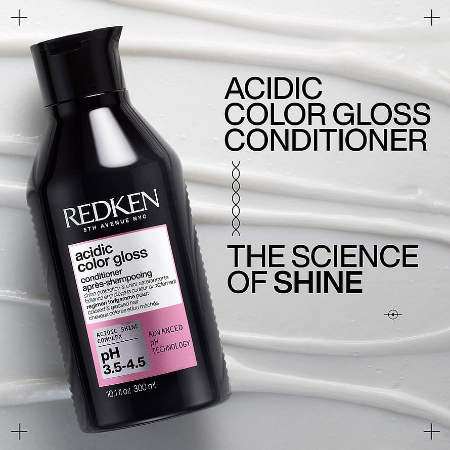 Redken Acidic Color Gloss Conditioner har en koncentrerad allt-i-ett-formula för glans, smidighet och tillför intensiv återfuktning. Uppnå glans med Acidic Color Gloss Conditioner. Redken Acidic Color Gloss Conditioner har en koncentrerad allt-i-ett-formula för glans, smidighet och färgskydd. Detta lyxiga balsam ger långvarigt färgskydd och glans i salongskvalitet för all hårtyper. Berikad med vår avancerade pH-teknologi och E-vitamin, förseglar denna formula med lågt pH-värde fjällskiktet och lämnar håret glansigt - Håret känns omedelbart revitaliserat. Detta pH-balanserande balsam är särskilt framtaget för att förlänga hårfärgens livfullhet och bibehålla glansen samtidigt som det tillför intensiv återfuktning. Resultatet? Hår som ser och känns levande, glansigt och friskt!