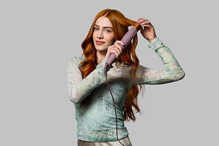För in en hårslinga i locktången och placera den nära hårbotten. Tryck sedan en gång på den lättanvända rotationsspaken så att locktången roterar och skapar rätt vinkel för att forma locken. Dra sedan långsamt locktången längs hårslingan mot topparna för att skapa vackra, studsiga lockar. Med Curl Direction Selector kan du dessutom variera lockarnas riktning för ett naturligt resultat.
