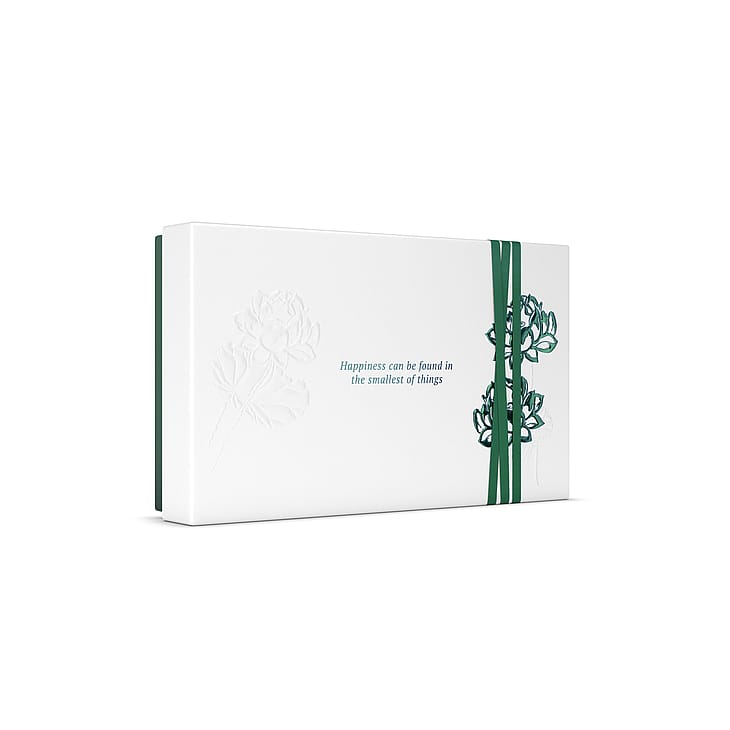 Gåvosetens förpackning kan återanvändas som en exklusiv förvaringsask för foton, brev och andra mindre föremål. Allt papper är FSC-certifierat och kommer från ansvarsfullt brukade skogar som uppfyller de högsta miljömässiga och sociala standarderna.