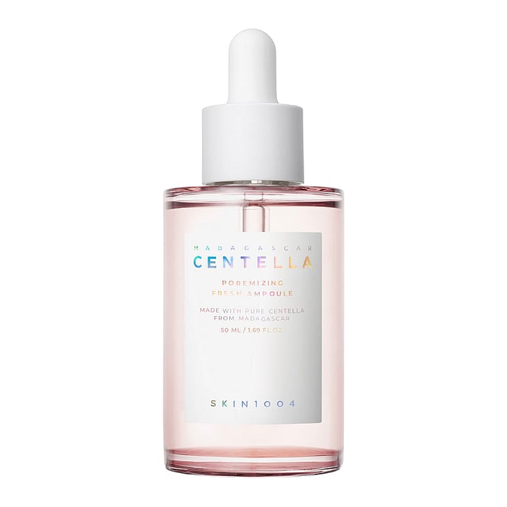 En por-minimerande funktionell ampull med pink mineralsalt och 9 peptider som rengör porerna och förbättrar hudens elasticitet.