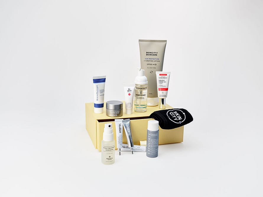 I Skincity Selection hittar du professionella hudvårdsfavoriter noga utvalda av våra hudterapeuter. Vi har samlat deras toppval från några av våra mest populära märken i en lyxig box.