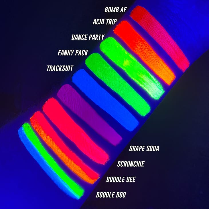Vattenaktiverad neonkakliner som lyser under UV-ljus/svart ljus! Perfekt för intensiv färg för ansiktsmakeup och kroppsmålningar. SUVA Beautys Hydra Liners/FX-formula ger en hållbar täckande färg. Den är kladdsäker och smetar inte av sig – färgen bleknar inte förrän du tvättar bort den!