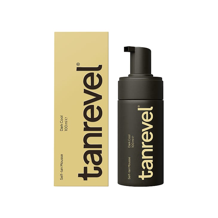 Lättapplicerad brun utan sol mousse för ett naturligt, gyllenbrunt resultat. Tanrevel® Self Tan Mousse Dark Cool är en lyxig brun utan sol-mousse berikad med karamell och olivpigment, som framhäver och förfinar din hudton samtidigt som den låter dig bygga upp din färg lager för lager till önskad intensitet. Formulan är omsorgsfullt framtagen med förstklassiga naturliga ingredienser som arganolja, glycerin och vitamin-E för att leverera både professionella resultat och utmärkt hudvård.