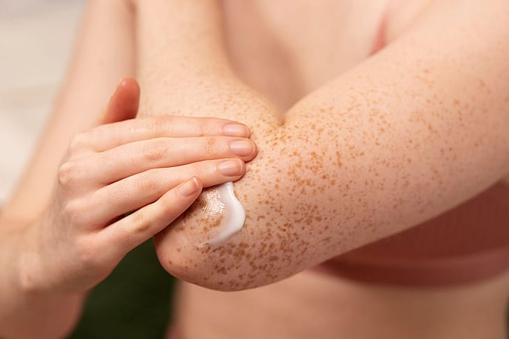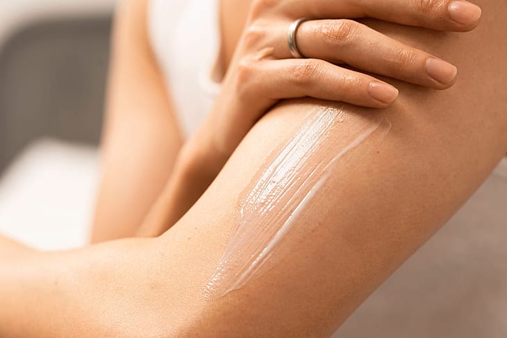 Aqua/Water/Eau, Caprylic/Capric Triglyceride, Butyrospermum Parkii Butter/Butyrospermum Parkii (Shea) Butter, Dimethicone, Cetearyl Alcohol, Olea Europaea Fruit Oil/Olea Europaea (Olive) Fruit Oil, Glycerin, Glyceryl Stearate, PEG-100 Stearate, C12-15 Alkyl Benzoate, Phenoxyethanol, Caprylyl Glycol, Parfum/Fragrance, Aluminum Starch Octenylsuccinate, Carbomer, Trisodium Ethylenediamine Disuccinate, Sodium Hydroxide, Linalool, Coumarin, Alpha-Isomethyl Ionone, Limonene, Citric Acid, Caramel.