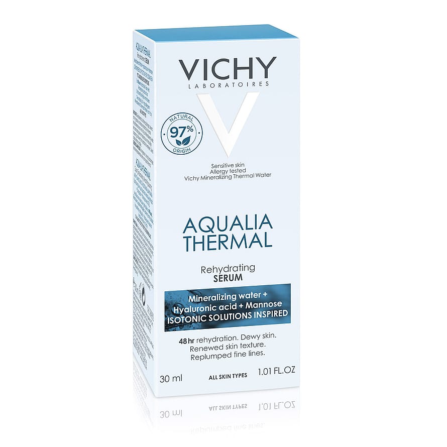 Aqualia Thermal Serum uppfriskar och återfuktar huden i 48 timmar samt stärker huden. Fina torrhetslinjer reduceras och huden får en fräsch utstrålning. För alla hudtyper.