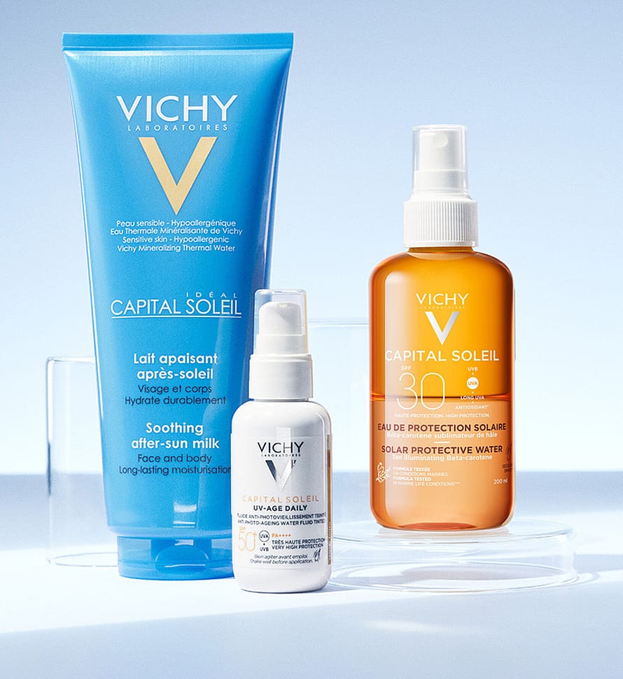 Vichy Capital Soleil Tan Beautifying Solskyddssspray SPF 30 för kropp och ansikte. Innehåller betakaroten som bidrar till att hjälpa fram en strålande solbrun lyster. Skyddar effektivt mot UVA-, långa UVA- samt UVB-strålar och formulan är berikad med antioxidanter som hjälper till att stärka hudens eget försvar. Vattenresistent, ultralätt och sensorisk formula som absorberas omedelbart utan att lämna efter sig vita märken. Mild doft.