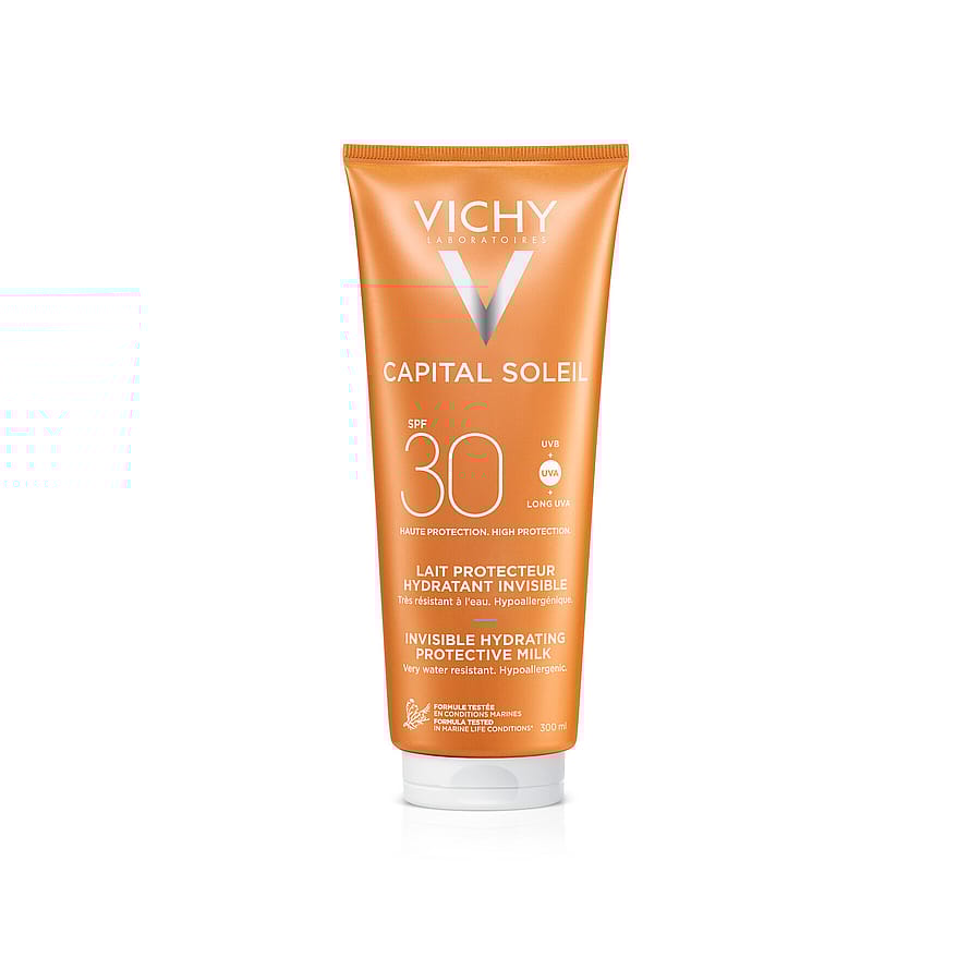Vichy Capital Soleil Fresh Protective Milk SPF30 är en fuktgivande sollotion för ansikte och kropp som ger ett bredspektrat skydd mot solens strålar (UVA+UVB-strålar). Kan användas av hela familjen. Lätt konsistens som absorberas snabbt utan att kladda och lämna vita märken. Mycket vattenfast och med fräsch doft.
