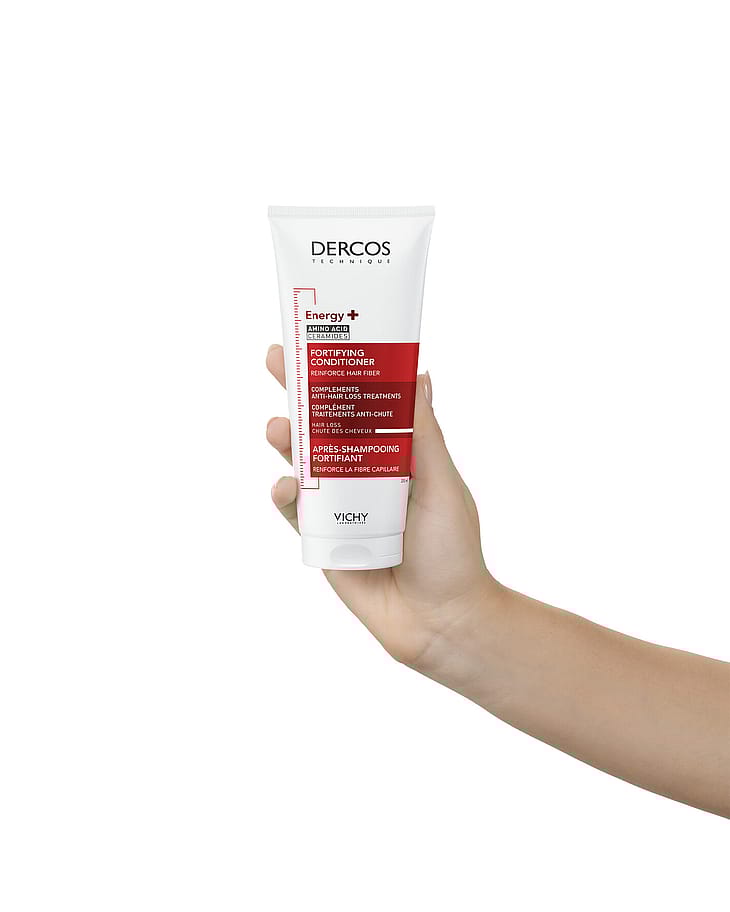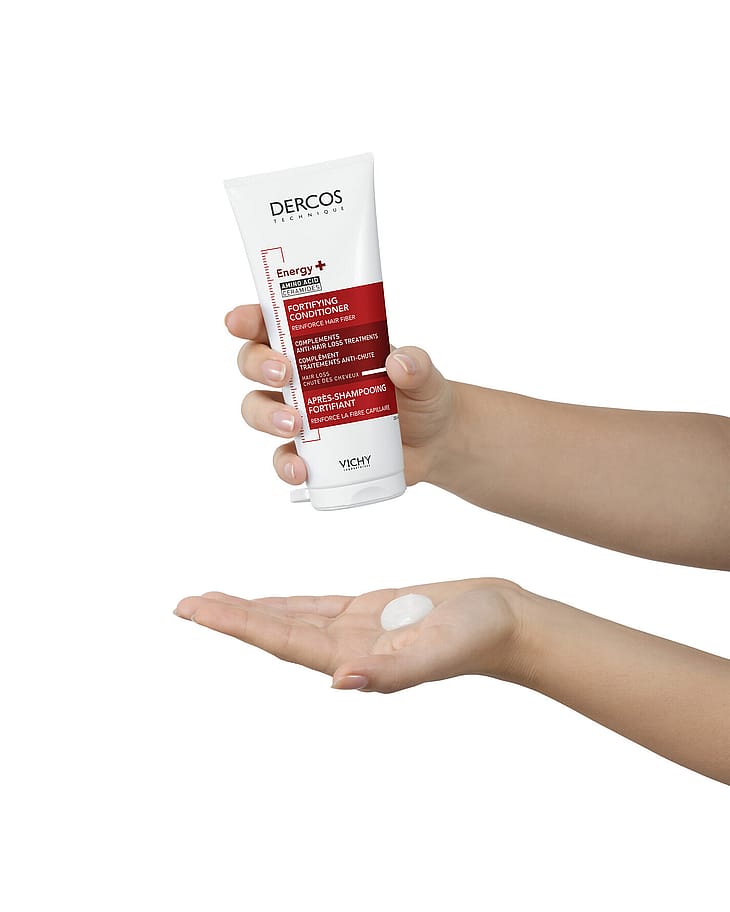 Dercos Energy+ Fortifying Conditioner är för män och kvinnor med skört hår och/eller hår som lätt bryts av. Balsamet hjälper till att reparera håret och minska antalet skadade hårstrånd*. Dercos Energy+ Fortifying Conditioner är berikad med aminexil och aminosyror [+ ceramid] som hjälper till att reparera håret och minska antalet skadade hårstrån*. Lämpligt för känslig hårbotten. Passar färgat hår.