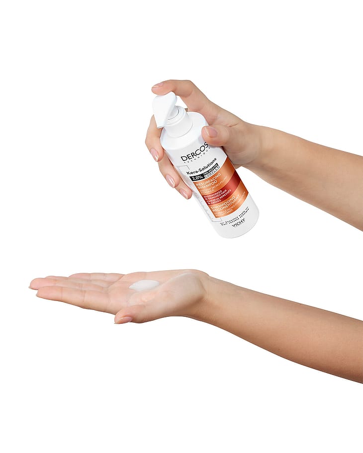 KERA-SOLUTIONS RESURFACING SHAMPOO är avsett för personer med överbehandlat och skadat hår. KERA-SOLUTIONS-serien är berikad med PRO-KERATIN-KOMPLEX och aktiva ingredienser inspirerade av hudvård för att hjälpa till att reparera skadade hårfibrer.