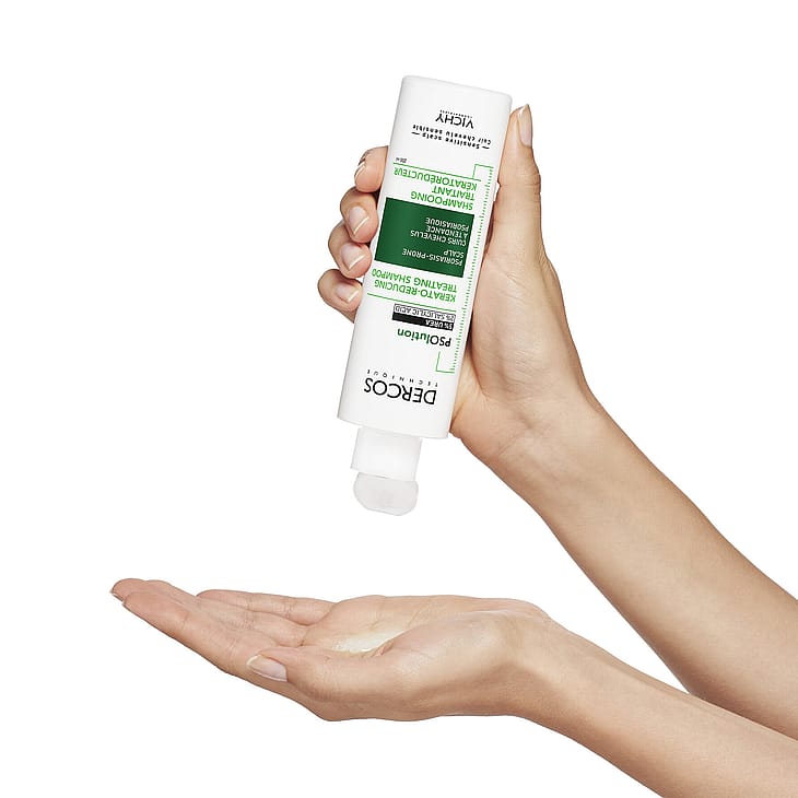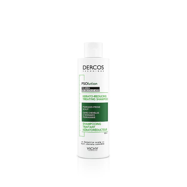 Den unika formulan innehåller aktiva ingredienser [UREA +salicylsyra+glycerin] för kompletterande vård till försvagad hårbotten som orsakats av psoriasis. Motverkar den feta känslan i håret, hårbottens kvalitet förbättras markant och den ser friskare ut. Återfuktar, mjukar upp och ger glans till håret. Hypoallergen och anpassad för känslig hårbotten. Applicera Dercos PSOlution Shampoo i hårbotten i vått hår. Massera försiktigt och låt verka i 2 minuter. Skölj sedan ur. Använd dagligen i 2 veckor, sedan efter behov. Vid kontakt med ögonen, skölj noggrant med vatten. Ej lämplig för barn under 3 år.