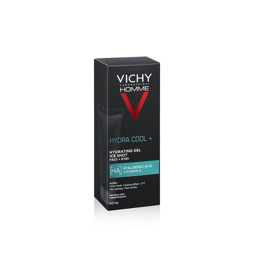 Vichy Homme Hydra Cool+ är en återfuktande gel för ansikte och ögon. Den har en ultralätt och uppfriskande formula som har en kylande effekt på huden. Berikad med hyaluronsyra och Vichys mineraliserande källvatten. Absorberas snabbt och håller huden återfuktad i upp till 48 timmar*.