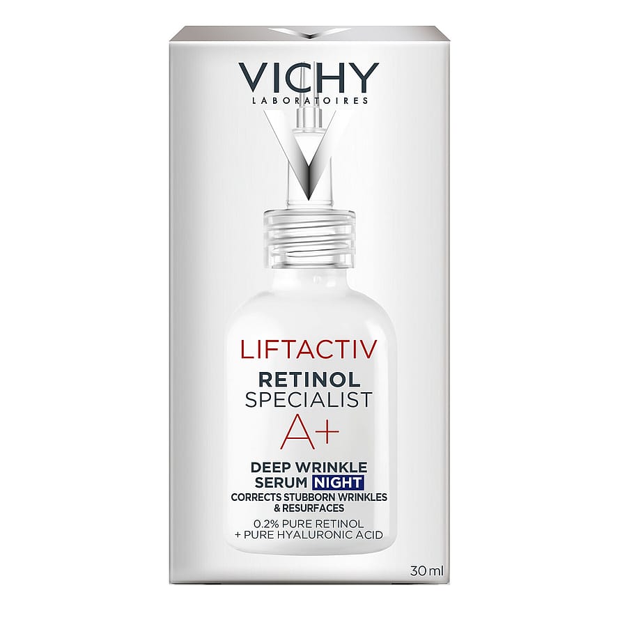 LIFTACTIV RETINOL SPECIALIST SERUM: Effektiv kombination av ren retinol och probiotiska fraktioner som reducerar pigmentfläckar och alla typer av rynkor. Serumet gör huden fastare och ger huden förnyad lyster.