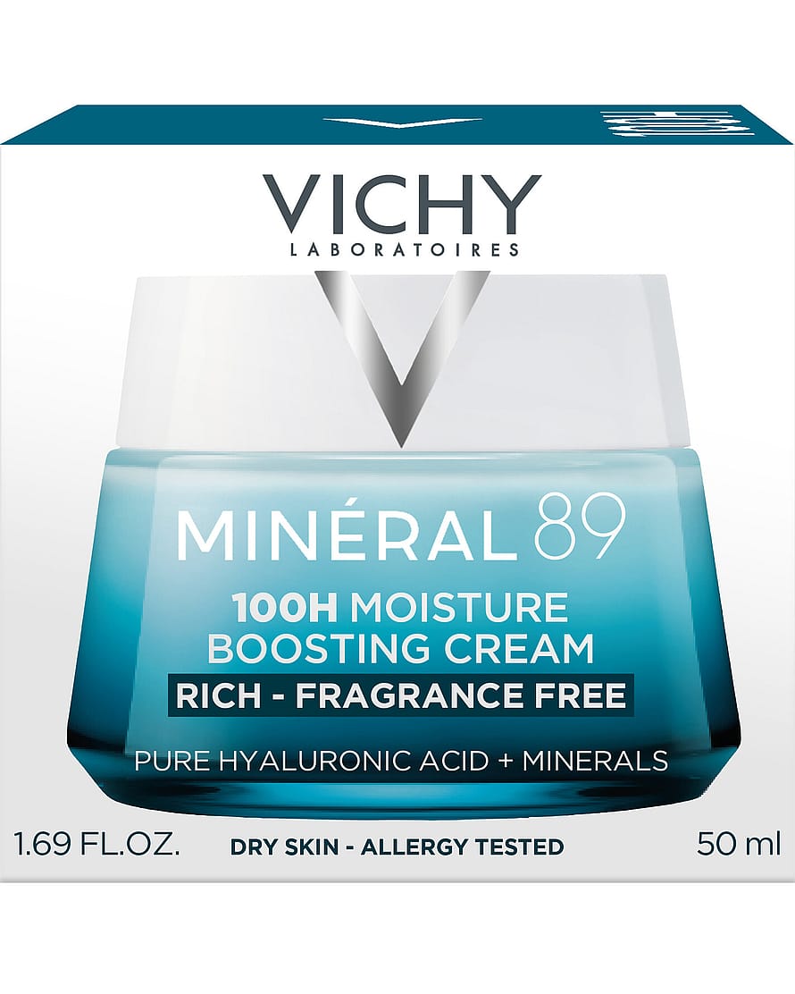 Daglig fuktboostande kräm utan parfym för torr och känslig hud. När din hud utsätts för dagliga påfrestningar försvagas den, vilket ökar hudens dagliga förlust av viktiga element: vatten, mineraler, lipider, vitaminer och hyaluronsyra. För första gången någonsin koncentrerar Vichy Laboratoires kraftfulla ingredienser i en näringsrik kräm som smälter på huden. Krämen fungerar som en sekundär hud som återuppbygger hudens fuktbarriär och inkapslar långvarig, stärkande fukt i upp till 100 timmar*.