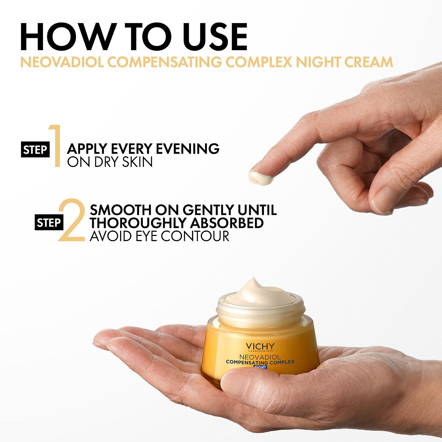 Neovadiol Menopause Nattcreme för fylligare och revitaliserad hud för kvinnor som upplever vallningar i övergångsåldern. Formula som kompenserar för den synliga effekt som övergångsåldern har på huden. Framtagen med Proxylane, Cassia-extrakt och LHA. Fräschar omedelbart upp huden med en -2,7 °C kylande effekt 1. På morgonen känns huden slätare. Nattcremen har en målinriktad effekt på minskad fyllighet. Omdefinierar ansiktskonturen och ger en jämnare hudton. För känslig hud. Hypoallergen. Dermatologiskt testad.