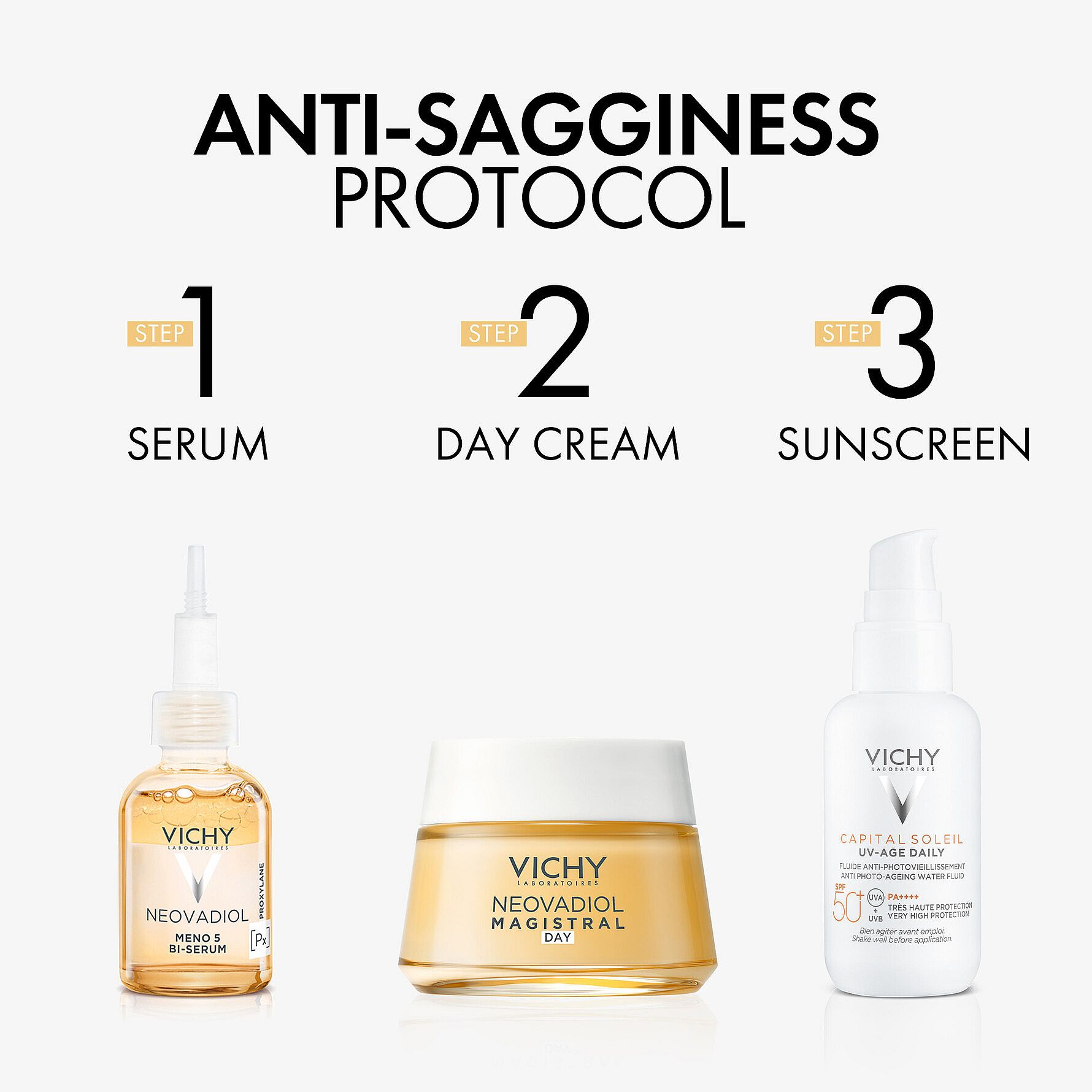 Vichy Laboratoires presenterar Neovadiol Post-Menopause dagcreme med en formula berikad med lipider som ger fyllighet och stramar upp huden. Ger resultat redan efter första appliceringen. Med långsiktiga resultat vid daglig användning mot den effekt som övergångsåldern har på huden. Cremen tillför fukt och näring till huden, är enkel att applicera och har en behaglig doft.