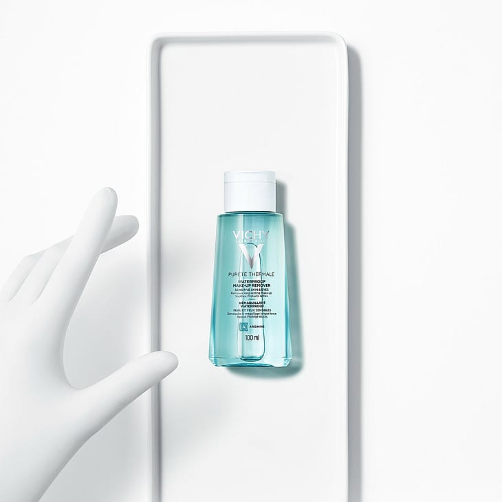 Pureté Thermale vattenfast ögonmakeupborttagare har en lätt tvåfasformula som tar bort hållbar och vattenfast makeup från ögon och läppar. Innehåller Vichys vulkaniska vatten och arginin, en aminosyra. Formulan hjälper till att skydda ögonfransarna och lugna det känsliga ögonområdet. Lämplig för känsliga ögon och kontaktlinsbärare. Testat under oftalmologisk kontroll. Hypoallergen.