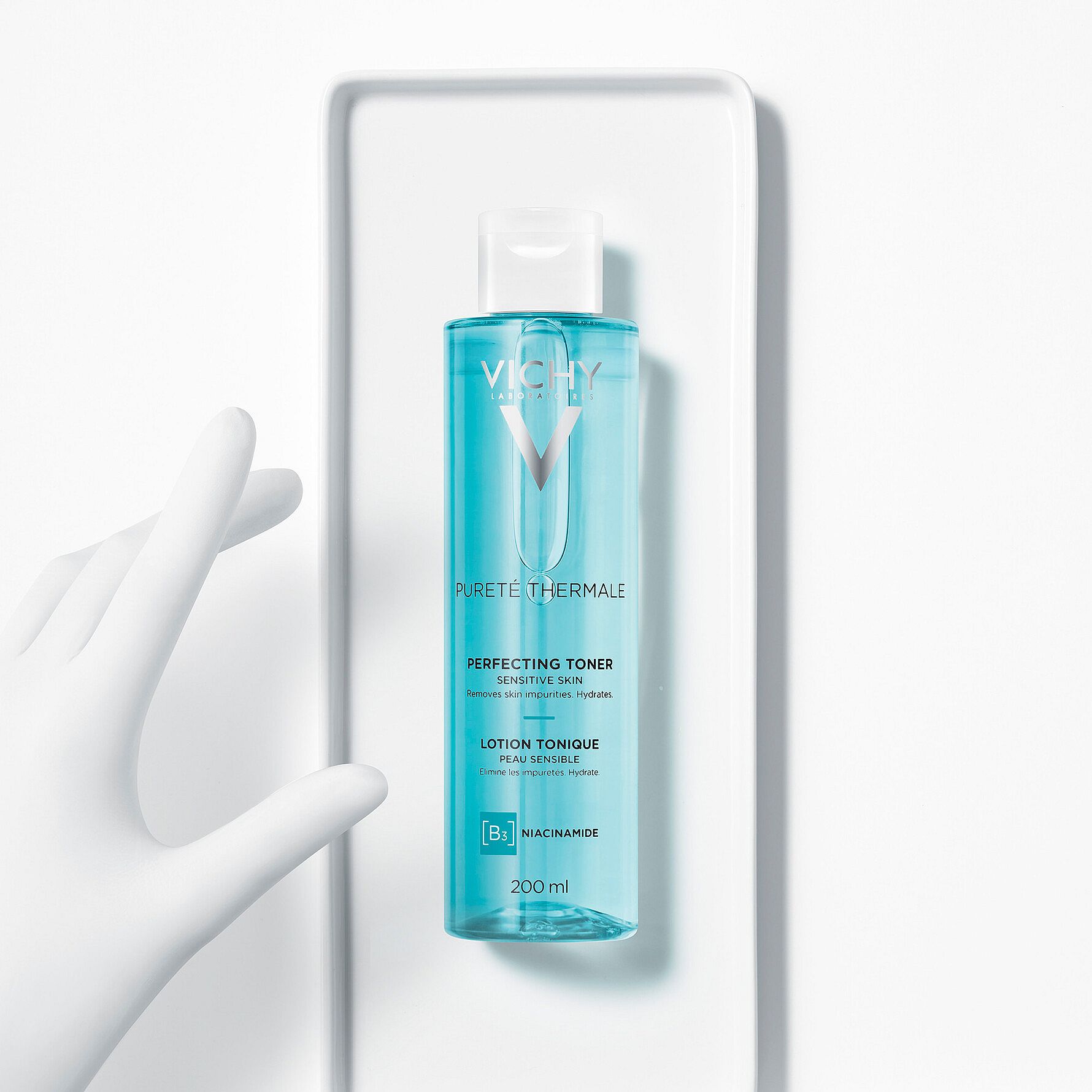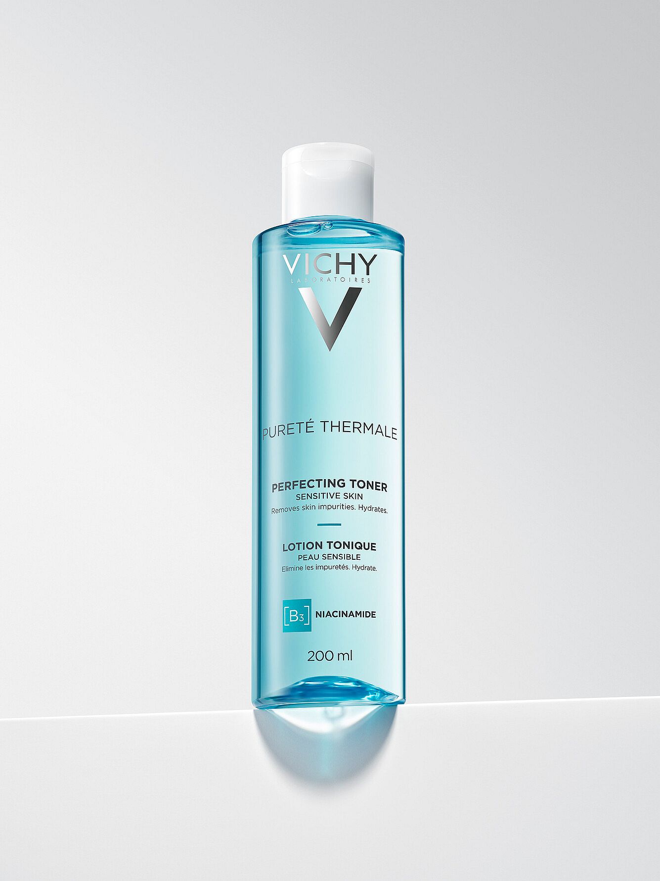 Pureté Thermale ansiktsvatten återfuktar samtidigt som den tar bort rester av smink. Huden ser fräsch och klar ut. Innehåller Vichys vulkaniska vatten och niacinamid. Testad under dermatologisk kontroll. Testad på känslig hud. Hypoallergen.