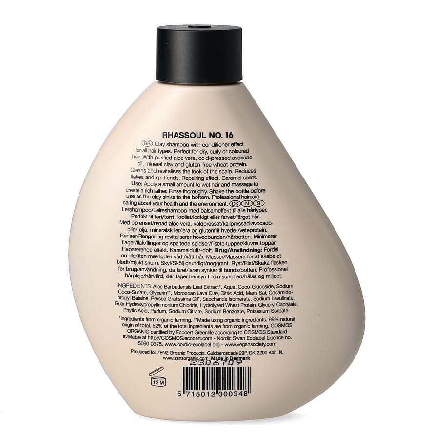Schampo Rhassoul nr 16 ger fukt, styrka och vitalitet till alla hårtyper. Det passar särskilt bra för torrt, lockigt och färgat hår samt torr hårbotten. Hårbotten och hårsäckarna stärks och håret bli friskt och glansigt. Lerschampot berikar hår och hårbotten med proteiner, vitaminer och mineraler och tillför massor av fukt och vård.